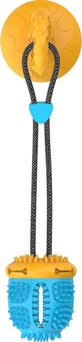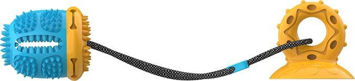 In de bal met ribbels en gleuven kun je hondenbrokjes en hondensnacks stoppen of er hondenpaté op smeren. Je hond zal het geweldig vinden. Deze manier van spelen en leren tegelijkertijd is zeer goed voor de intelligentie-ontwikkeling van uw hond. Daarnaast zorgen de ribbels ervoor dat de tanden van uw hond “gepoetst” worden. Daarmee draagt dit hondenspeelgoed bij aan een gezond gebit van uw hond. De sterke zuignap kan op een gladde ondergrond geplaatst worden waarna deze stevig vastzit en niet zomaar losgetrokken kan worden. De sterkte zuignap is te bevestigen op tegels, plavuizen, gladde deuren en ramen. Dit hondenspeelgoed is uitermate geschikt voor kleine en middelgrootte hondenrassen.