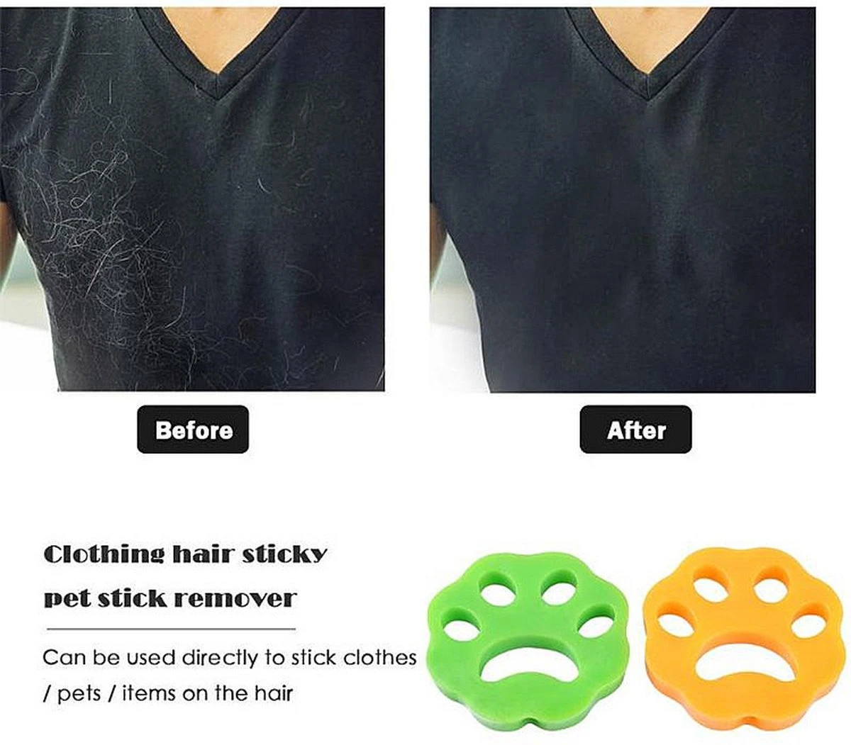 - In de wasmachine zullen de haren dus niet plakken aan de verwijderaars, omdat de losgekomen haren mee wegspoelen met het water.