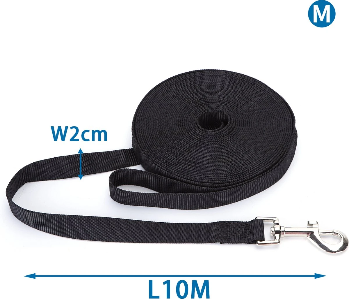 - De lange trainingslijn heeft een musketonhaak met een goede sluiting.
